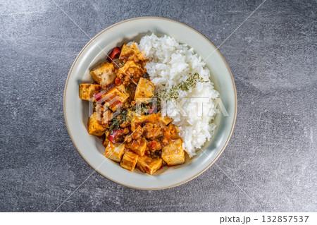 Mapo Tofu Rice Bowl (Mapo Doufu Fan), a popular and spicy Chinese dish from Sichuan province.