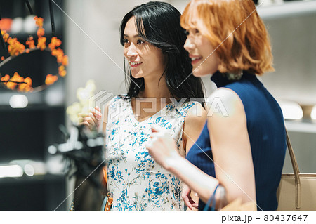 おしゃれな雑貨店でショッピングを楽しむ女性