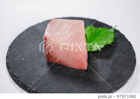 刺身用のブリ(ぶり)の柵どり。鮮魚、養殖の国産ぶり、鰤。