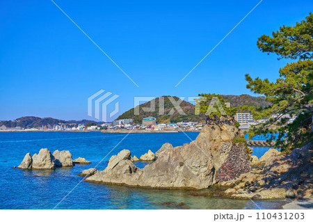 神奈川県三浦郡葉山町の森戸神社の裏手にある千貫松越しに北側の眺望