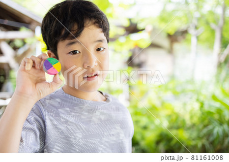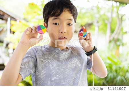 ぶんぶんゴマを作る小学生の男の子