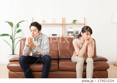 そっぽを向く若い男女カップル