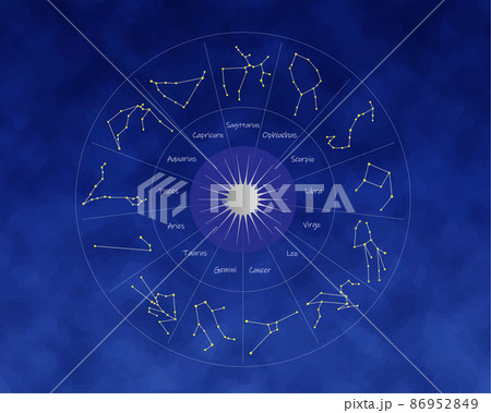 十三星座のホロスコープと夜空、スピリチュアル、英語