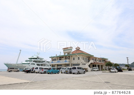 沖縄 今帰仁 運天港旅客ターミナルに停泊中のフェリーいへやⅢ