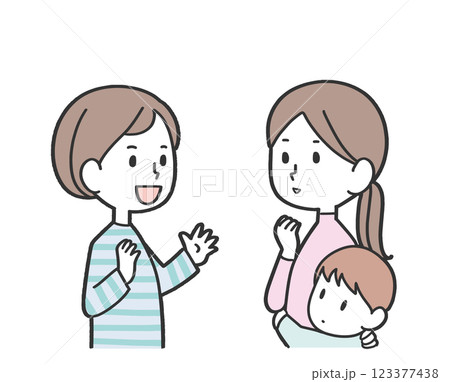子連れの母親と話す女性