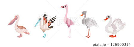 Different Bird and Avian Species with Beak and Wing Vector Set