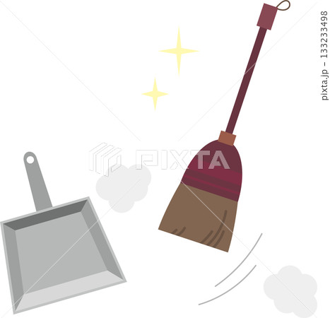 掃除道具(ほうき・ちりとり)のシンプルなイラスト素材