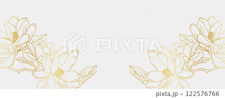 Luxury gold magnolia flowers background. Floral pattern tropical in line art style for greeting, invitation, wedding card, wall art, wallpaper and print. Vector illustration