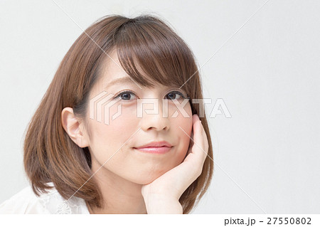 頬杖 女性 笑顔