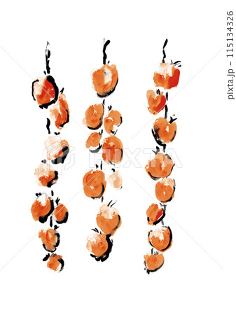 干し柿が吊るしてある懐かしい田舎風和風手書き筆イラスト