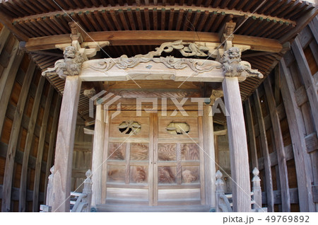 信州 安曇野 松川村の細野神社 本殿背面縦 安曇野の名匠 浅川豊八の造立 村文化財指定