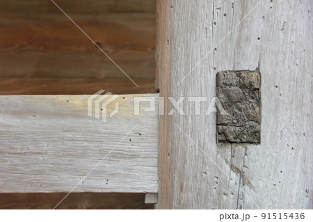 木造建築物の柱、梁、ほぞ継ぎ部分