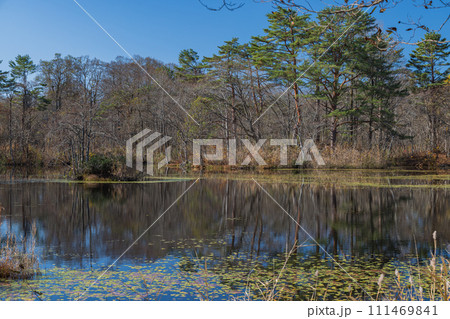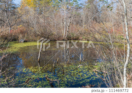 日本 福島県耶麻郡北塩原村、裏磐梯高原の中瀬沼探勝路沿いにある小さな沼