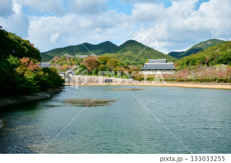 京都府大原三千院もみじ流るる橋のほとり