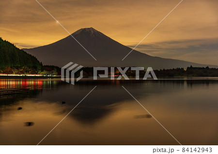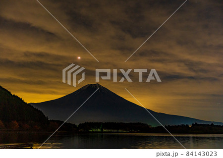 (静岡県)皆既月食の日、田貫湖から望む富士山