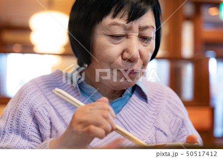 食事をする年配女性