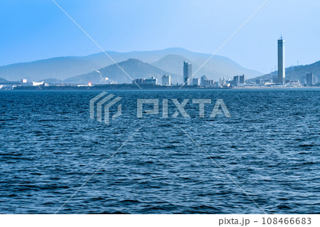 丸亀港と本島港を結ぶフェリーほんじま丸から見た宇多津と坂出2 香川県丸亀市