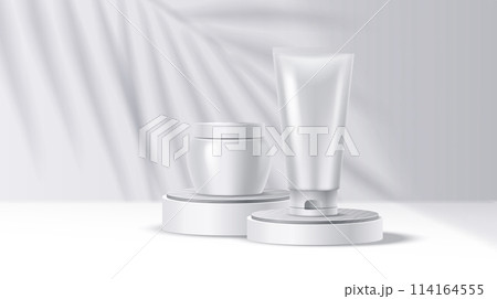 Mockup tube and jar on podium with shadows illustration