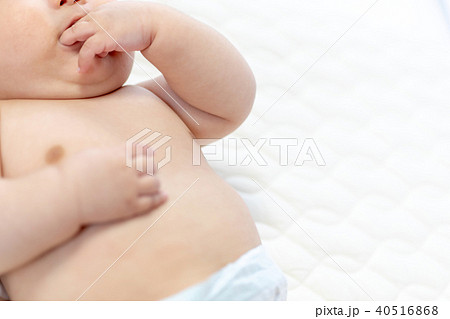 赤ん坊 着替え中の指しゃぶり