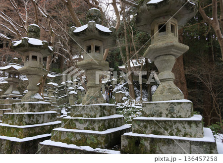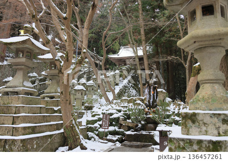 四国遍路の番外霊場。四国別格二十霊場第十五番札所「箸蔵寺」参道脇に並んだ石灯籠とぼけ封じ観音