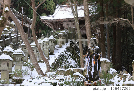 四国遍路の番外霊場。四国別格二十霊場第十五番札所「箸蔵寺」参道脇のぼけ封じ観音と鐘楼堂