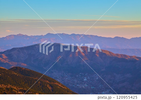 冬の朝の神奈川県 箱根駒ヶ岳ロープウェー 駒ヶ岳頂上から北側の明神ヶ岳方面