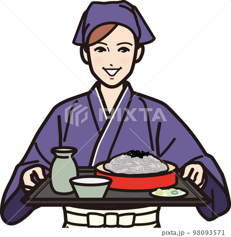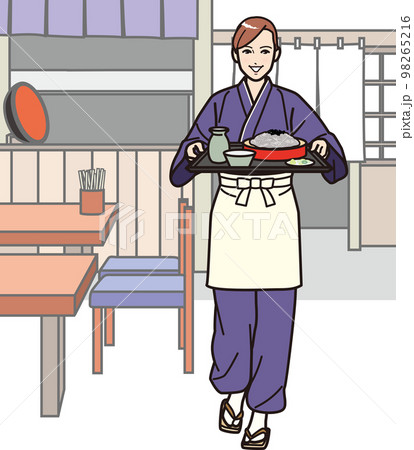 そば屋の店員A 蕎麦を運ぶ 店内 全身
