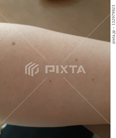 赤いほくろ 腕のほくろ 女性の腕の肌