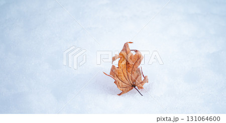 雪の上に落ちた枯葉一枚のイメージ風景