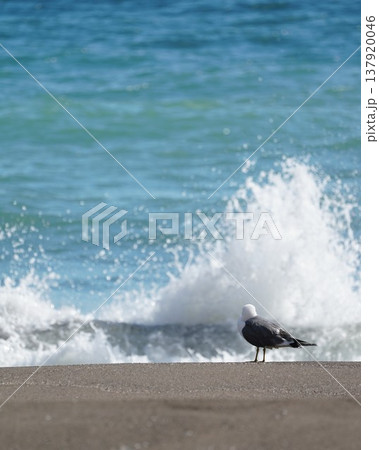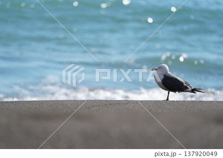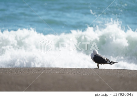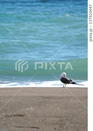 砂浜に佇むウミネコ