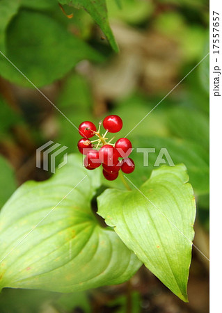 東北地方青森県の八甲田山のマイヅルソウの赤い実