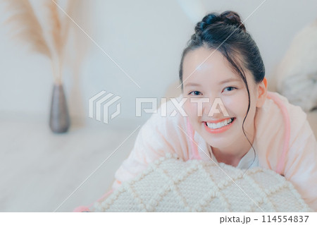 自宅のソファーに寝転ぶ若い女性