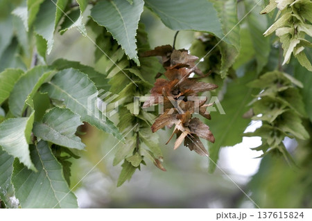 アカシデ(Carpinus laxiflora)の実 秋に熟す果実と果苞 東北