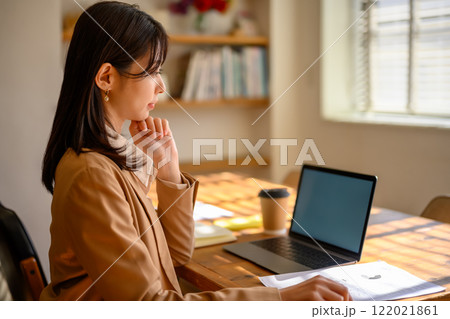 ノートパソコンを持つビジネスウーマン