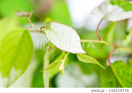 初夏のまたたびの白い葉
