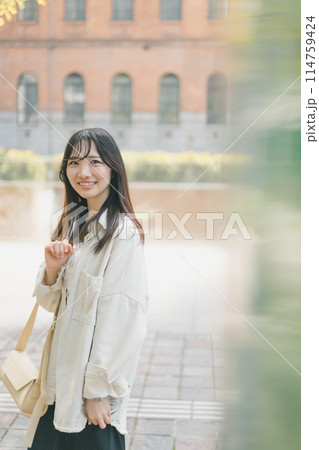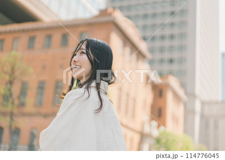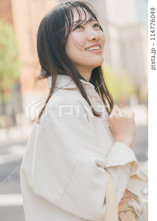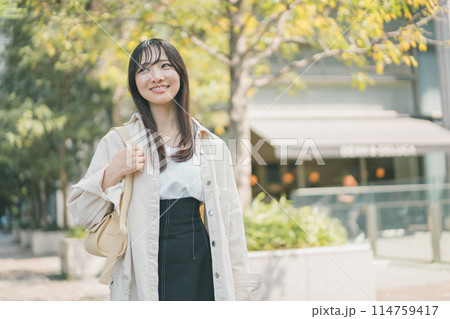 都会を街歩きする若い女性