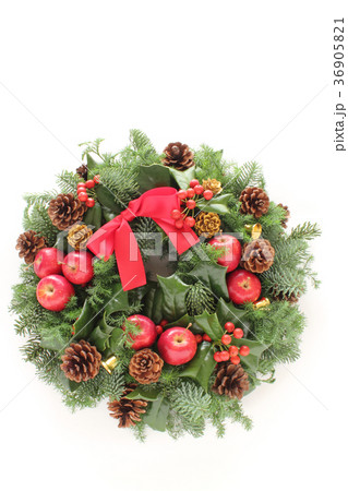 クリスマス・ホーリーとモミノキとヒメリンゴ他の手作りリース(縦 全体 斜め)
