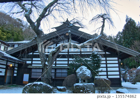 冬(厄除け縁日大祭)の牛伏寺 本坊としだれ桜 長野県松本市
