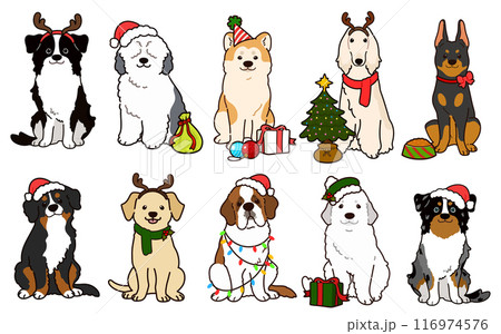クリスマスのシンプルで可愛い大型犬のイラストセット