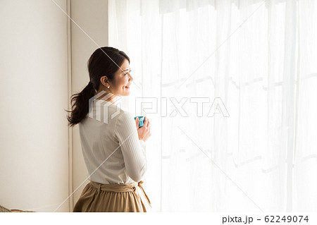 窓際に立つ女性