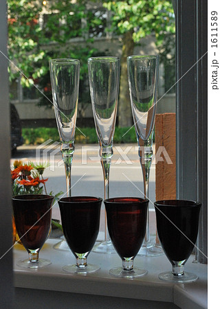 窓際のグラス越しの風景
