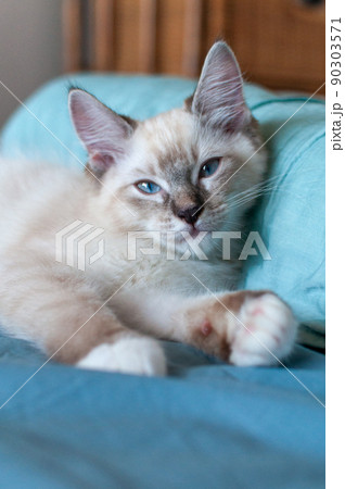 まどろんでいるラガマフィンの子猫