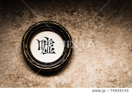クラシカルなフレームに入った手書き文字『嘘』