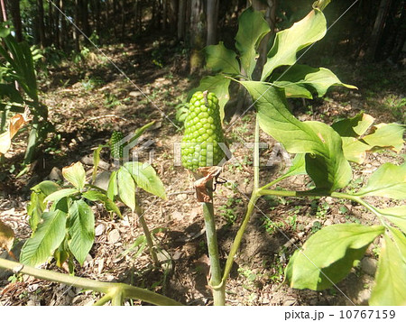 山林に生えるマムシグサ