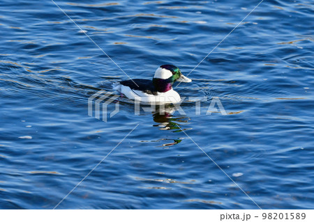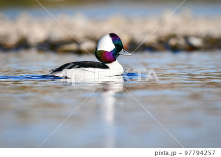 純白と、虹色の美しい羽を持った珍しい冬の渡り鳥ヒメハジロ