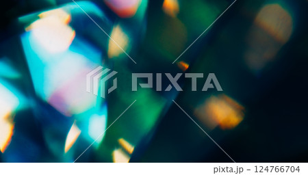 Gleam texture. Blur glow flare. Defocused blue yellow green multicolor lens glint kaleidoscope on abstract art light background.