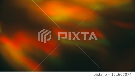Defocused shiny flare. Gradient texture. Orange yellow pink color rainbow glare radiant glow on visual optical light art dark black background.