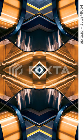 futuristic technology background with digital mirrored and symmetry patterns and cyber glow, innovative tech backdrop with tunnel and warp virtual network design and electronic light, blue and gold