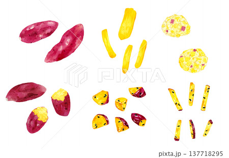 サツマイモ料理のセット 手描き水彩イラスト素材
