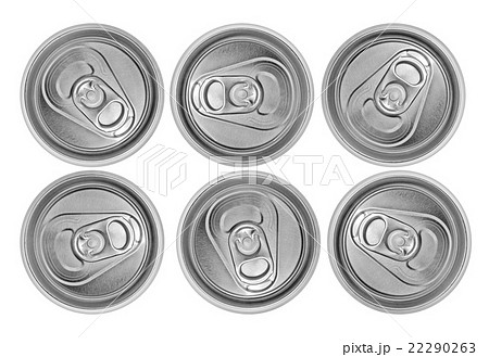 aluminum cans with carbonated water, energy drinks or beer. the view from the top